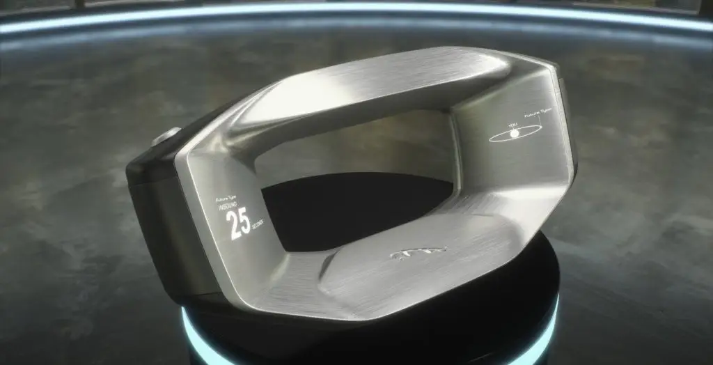 “This steering wheel concept lives in your home and becomes your trusted companion. Sayer is the first voice-activated artificial intelligence (AI) steering wheel that will be able to carry out hundreds of tasks. Sayer could signal your membership of our on-demand service club. A club which offers either sole ownership or the option of sharing the car with others in your community.”