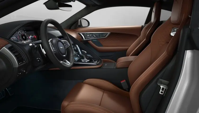 The driver-focused ‘1+1’ cabin surrounds the occupants with rich, luxurious materials. The slimline Performance Climate Seats feature 12-way adjustment and are trimmed in Windsor leather with a choice of Ebony with Light Oyster contrast stitching or – for a more sporting theme – Mars with Flame Red stitch. Details such as the beautifully crafted monogram stitch pattern, repeated in the door trim, are among the subtle refinements which make F-TYPE feel special.
